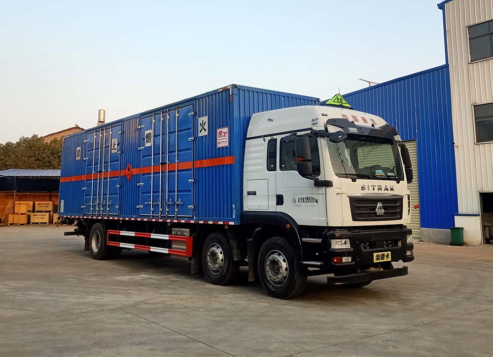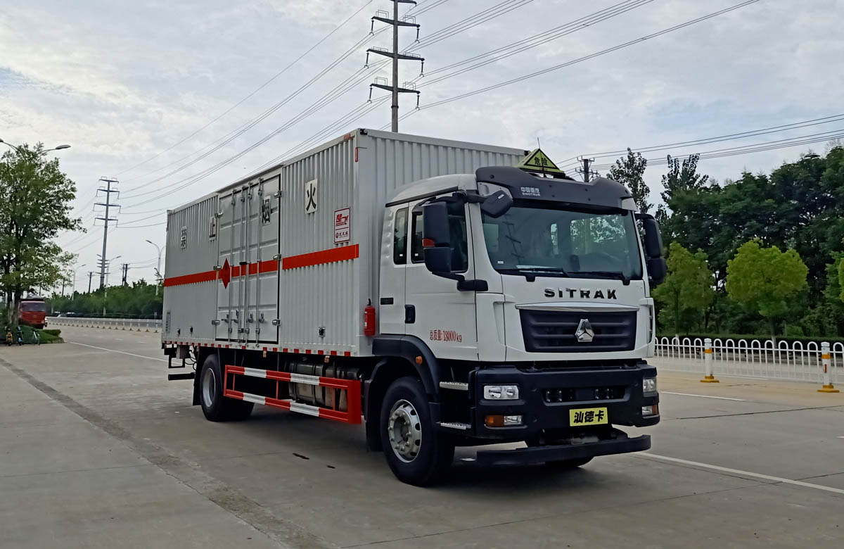 重汽汕德卡9米6易燃?xì)怏w廂式運(yùn)輸車
