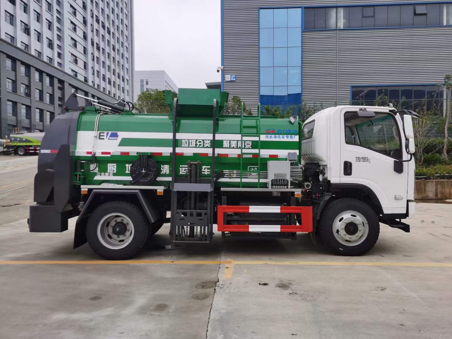 1.餐廚垃圾車也叫泔水車,主要用于廚余垃圾的收集和運(yùn)轉(zhuǎn),具有裝、卸垃圾自動(dòng)化程度高、工作可靠、密封性好、裝載容積大、操作簡(jiǎn)便、運(yùn)輸過程密閉,無污水泄露和異味的散發(fā),環(huán)保性好等特點(diǎn)??膳溲b載不同規(guī)格的標(biāo)準(zhǔn)垃圾桶,具有廣泛的適用性。餐廚垃圾車是高效、清潔的廚余垃圾收、運(yùn)專用車