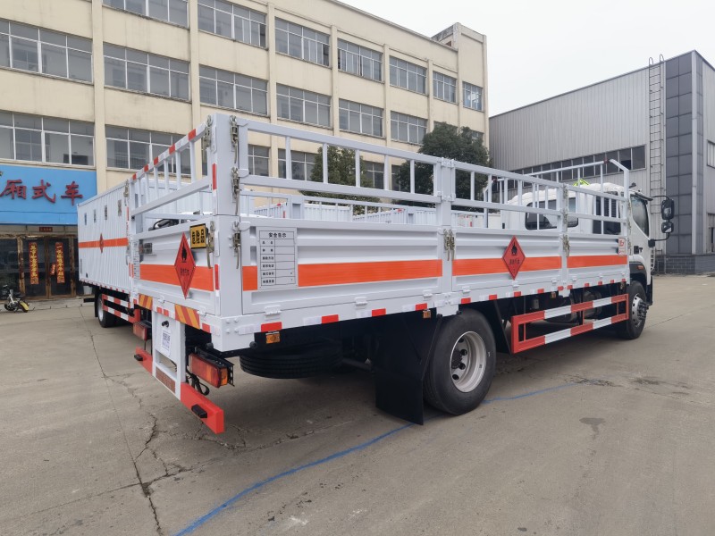 廂體邊板采用瓦楞板,底板標配4mm花紋鋼板,底板上方鋪防靜電膠皮,選裝可拆卸高欄,活動立柱,底板做防銹處理。箱體采用雙組份丙稀酸油漆制作,所有合頁均為熱鍍鋅材質(zhì)。選裝液壓升降尾板。整車國標反光標示及**告標志 (隨車工具,滅火器,三角頂燈,危險品標識,拖地靜電帶),其他按照公告標準制作。