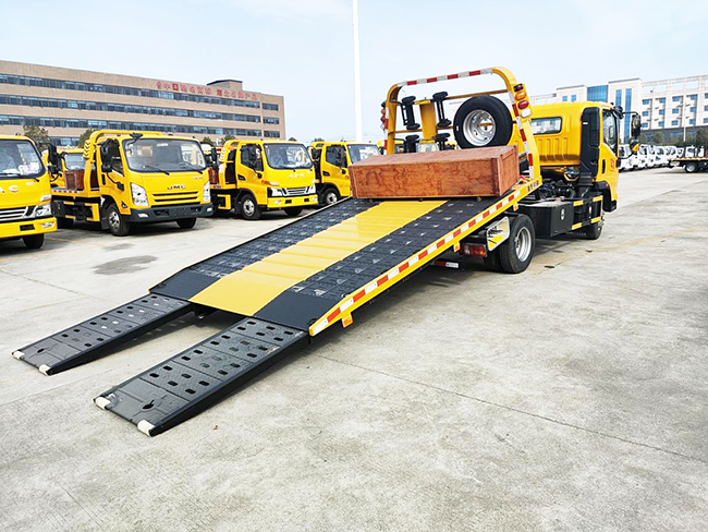 5、清障車是在專用底盤基礎上裝配托舉、拖拽、起重等裝置,對車輛進行清障拖牽、背載運輸?shù)茸鳂I(yè);