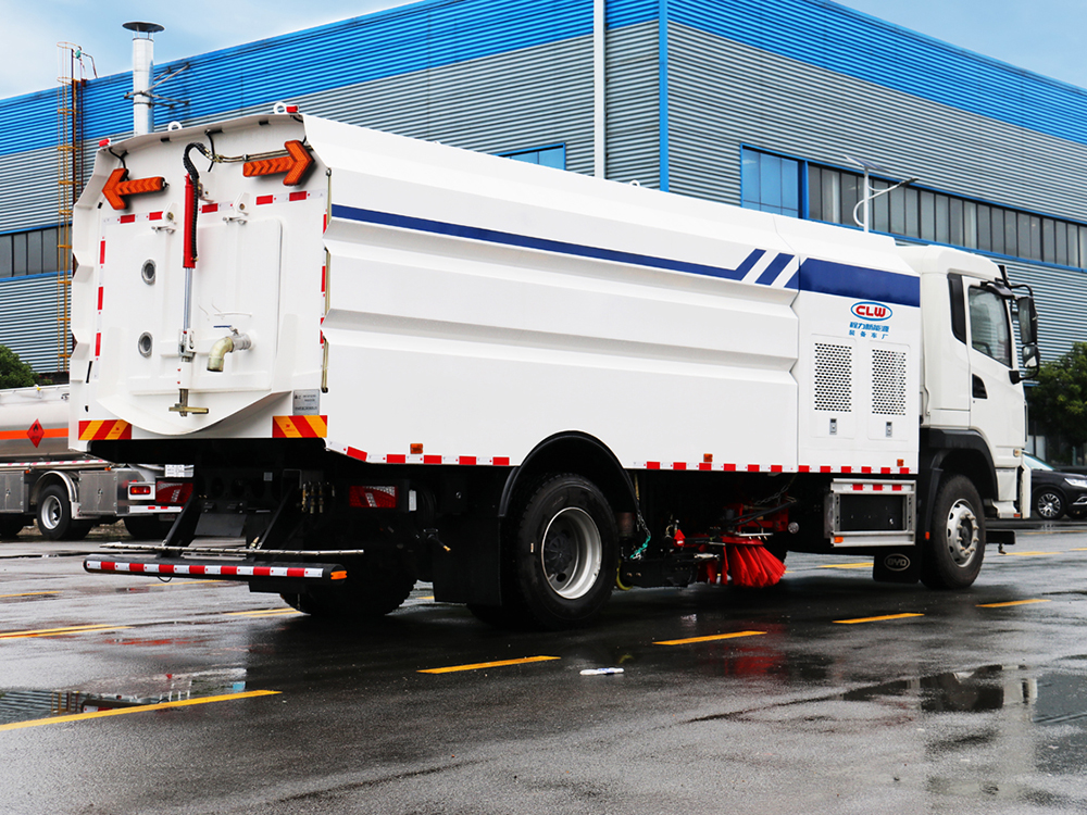 7、程力牌純電動(dòng)洗掃車具有路面清洗、路面清掃、路緣清洗、路緣和路緣石立面洗刷、低壓沖洗、噴霧除塵等多功能。有“全洗掃”、 “左洗掃”、 “右洗掃”、 “全掃”、 “左掃”、 “右掃”等多種作業(yè)模式可選擇。選擇“全洗掃”模式清洗廣場(chǎng)和路面,清洗效率高效果好,洗凈率達(dá)90%以上。選擇“左洗掃”或“右洗掃”模式清洗路面和路緣、洗刷路緣石立面。需要進(jìn)行路面清掃或路面保潔作業(yè)時(shí),可選擇掃路模式。需要噴霧除塵時(shí),可開(kāi)啟噴霧裝置,進(jìn)行噴霧除塵作業(yè)。
