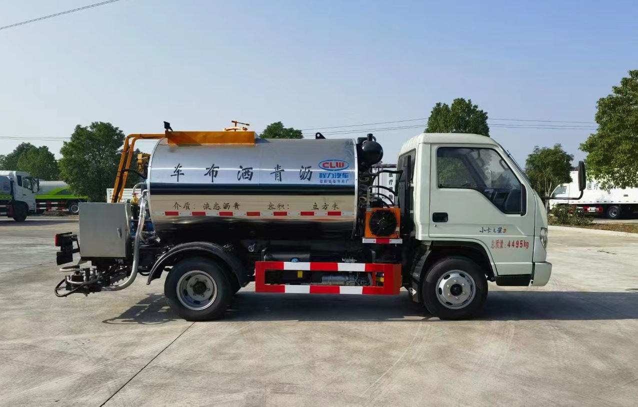 福田小卡之星3,5擋變速箱,650鋼絲輪胎。上裝罐體3立方,分全智能型、半智能型(標(biāo)準(zhǔn)型)、普通型,可對熱瀝青、乳化改性瀝青、乳化瀝青進行噴灑!